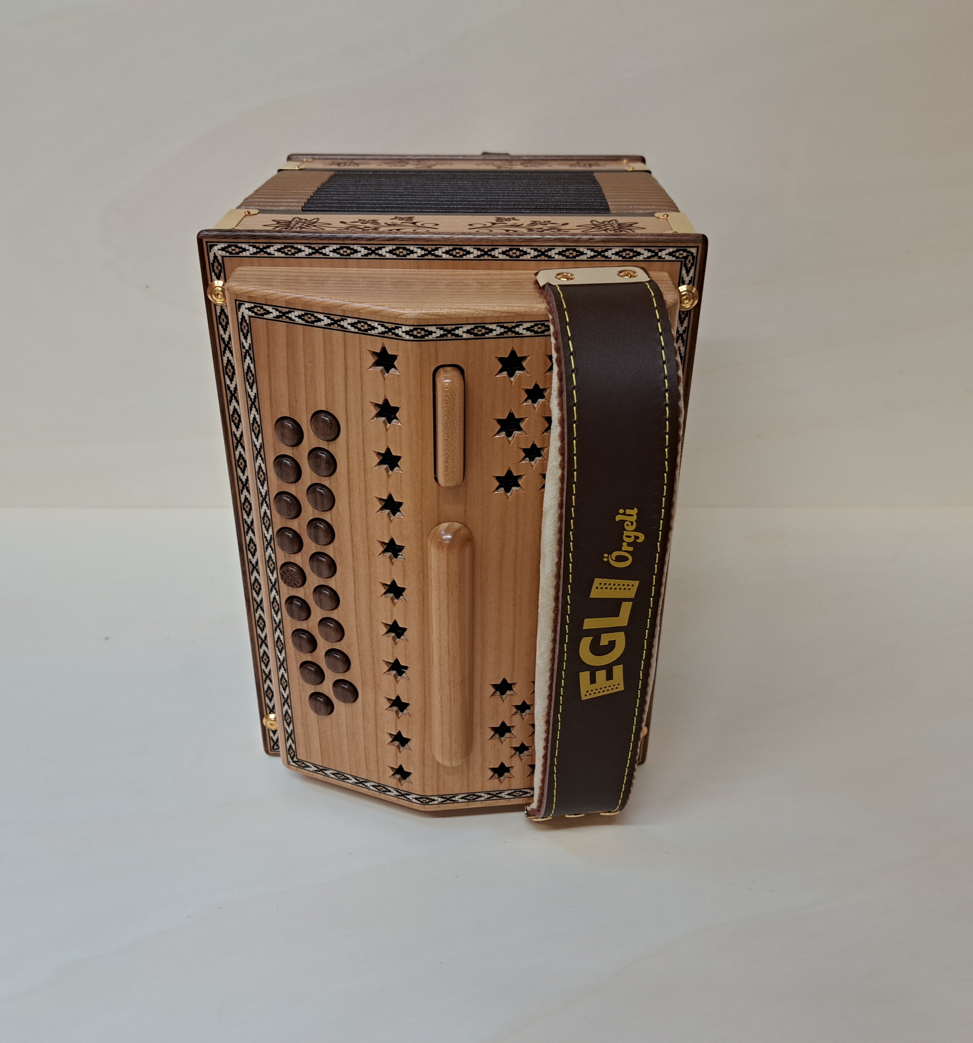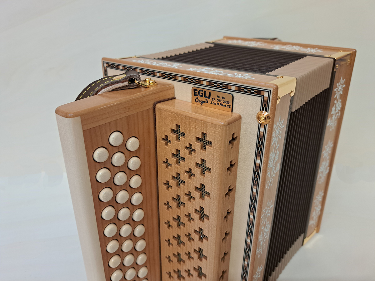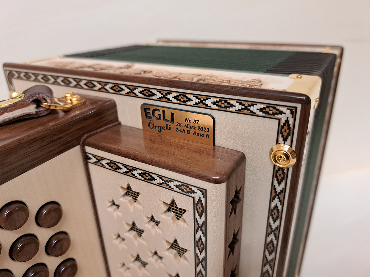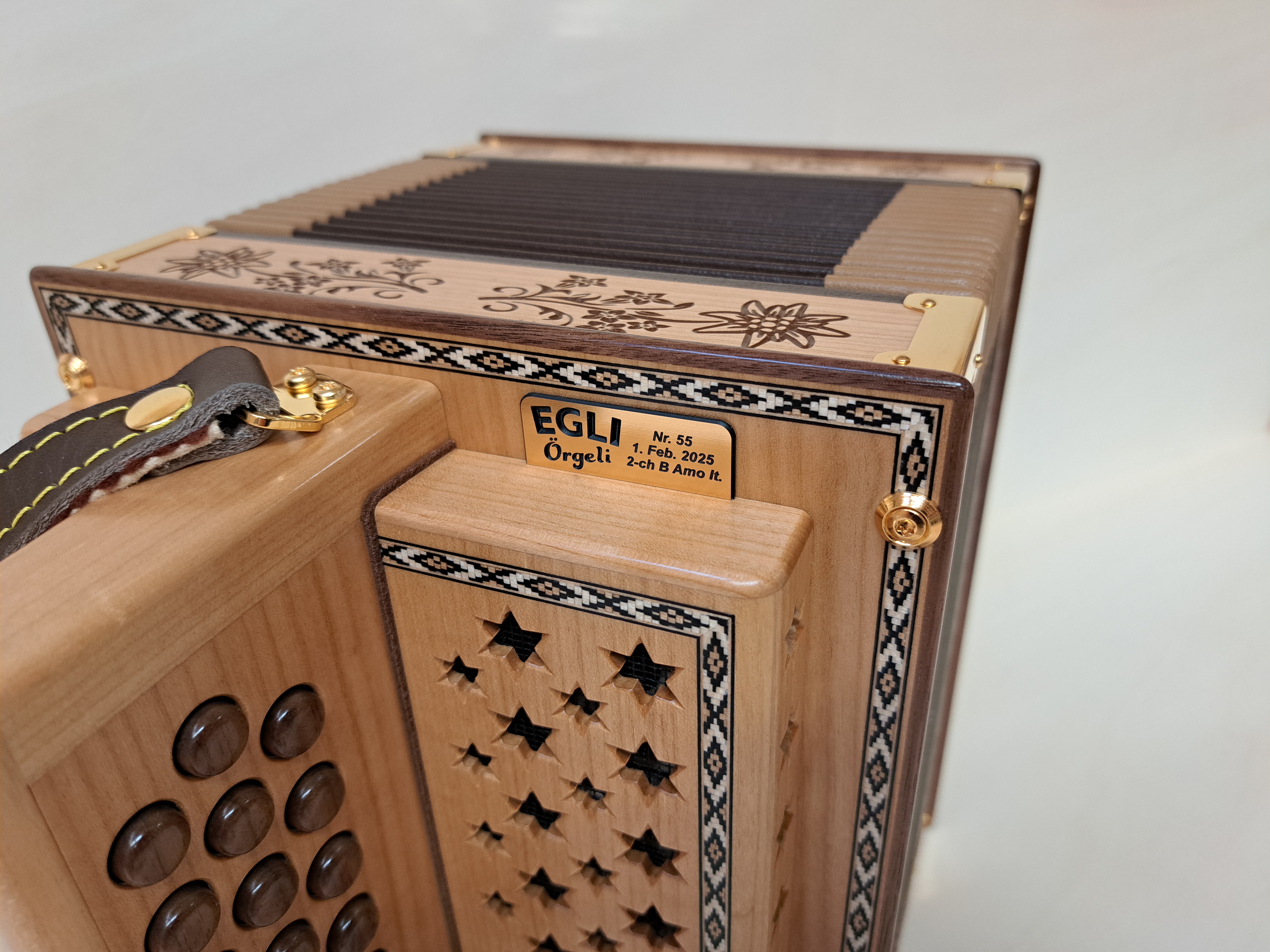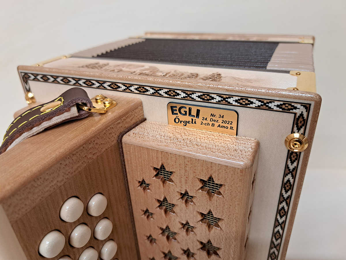 Bei EGLI Örgeli lebt die Tradition des Schwyzerörgeli-Baus weiter. Ueli Egli hat das Schwyzerörgeli zwar nicht neu erfunden, aber zumindest die gesamte Mechanik optimiert. Ein EGLI-Örgeli ist eine komplette Eigenproduktion. Bis auf die Intarsien, den Balg und das Stimmen stammt alles aus den Händen von Ueli Egli, der damit zu den Örgeli-Bauern in der Schweiz zählt, die praktisch das gesamte Schwyzerörgeli selber und mit moderner Fertigungstechnik herstellen.