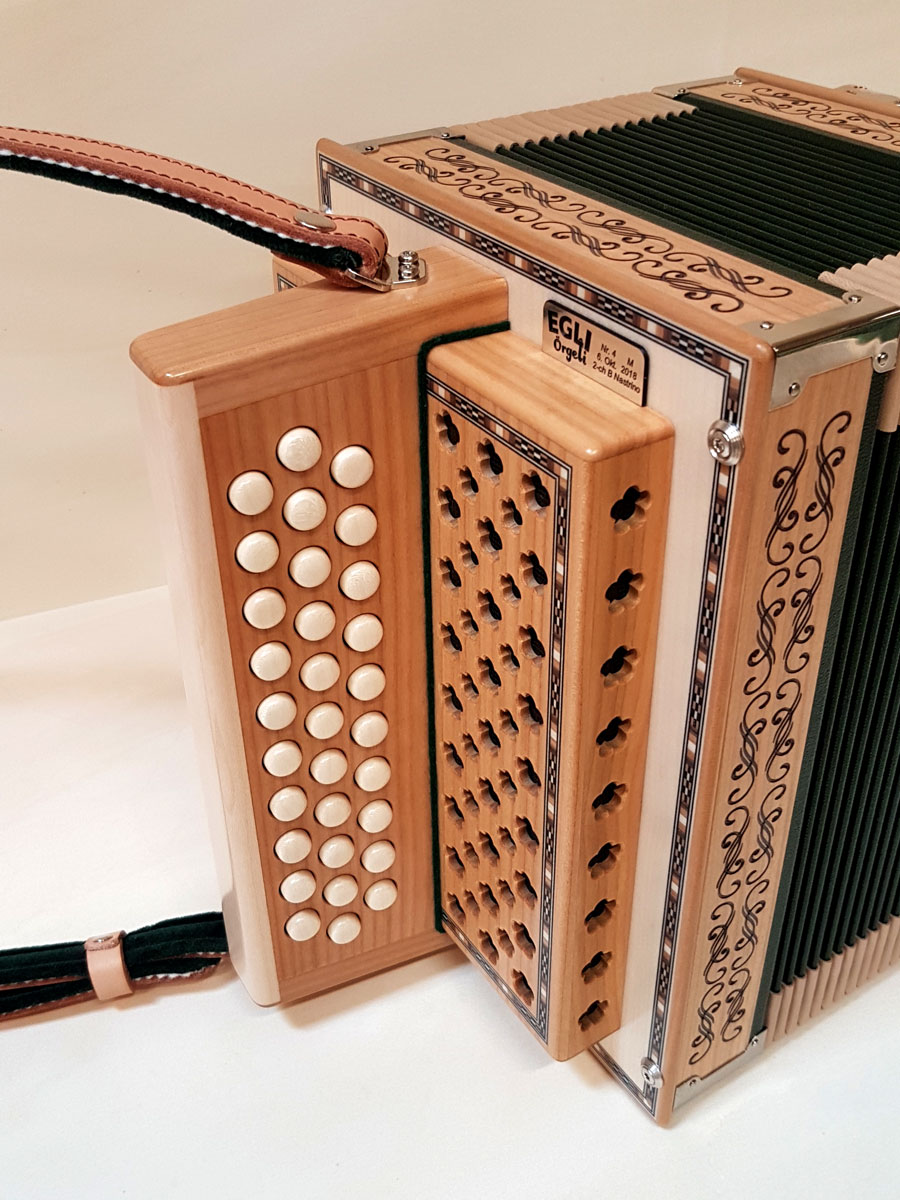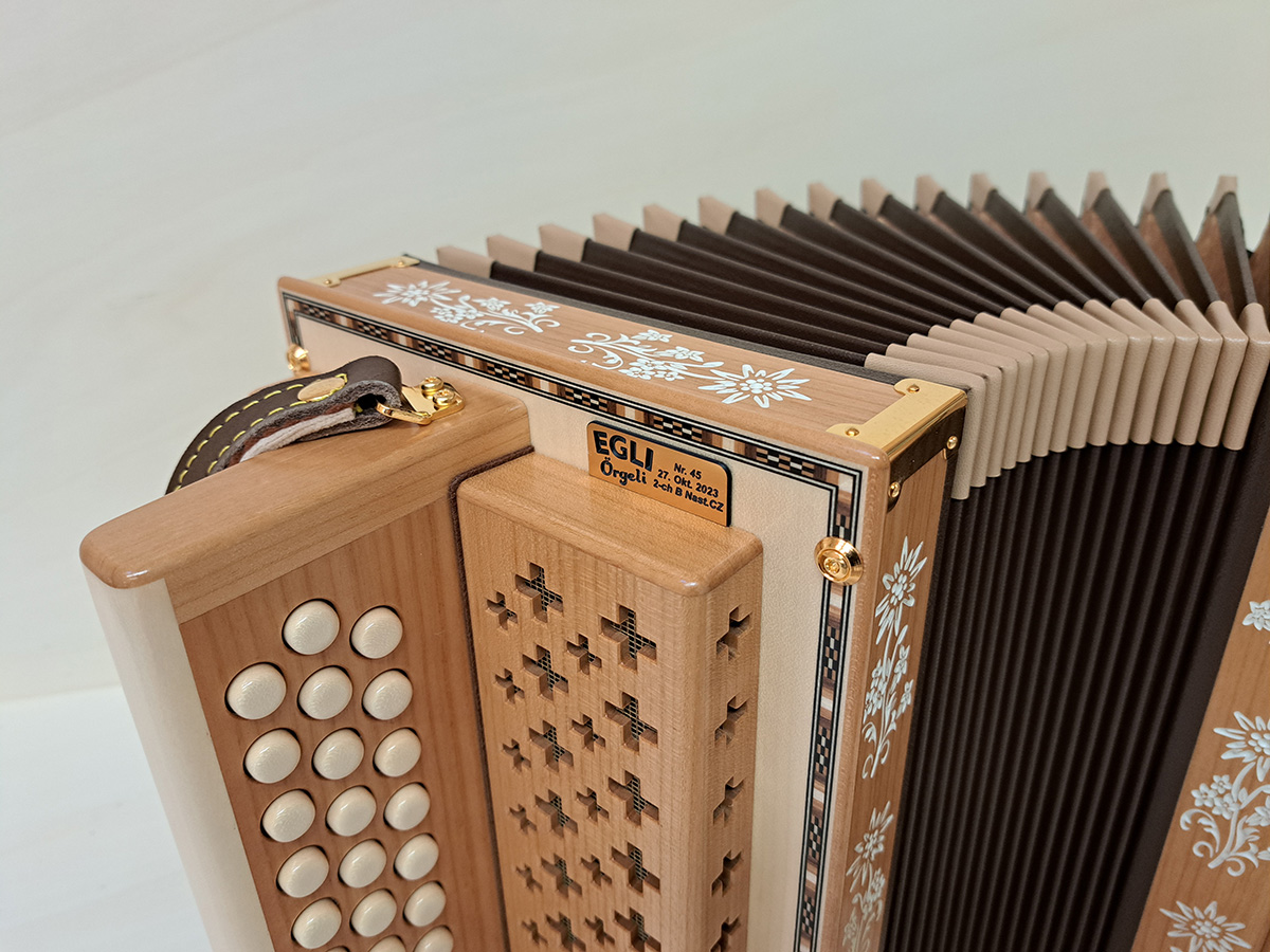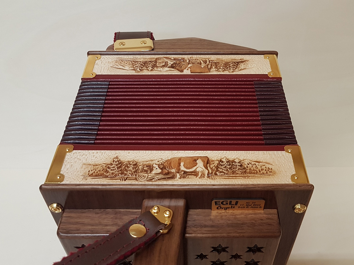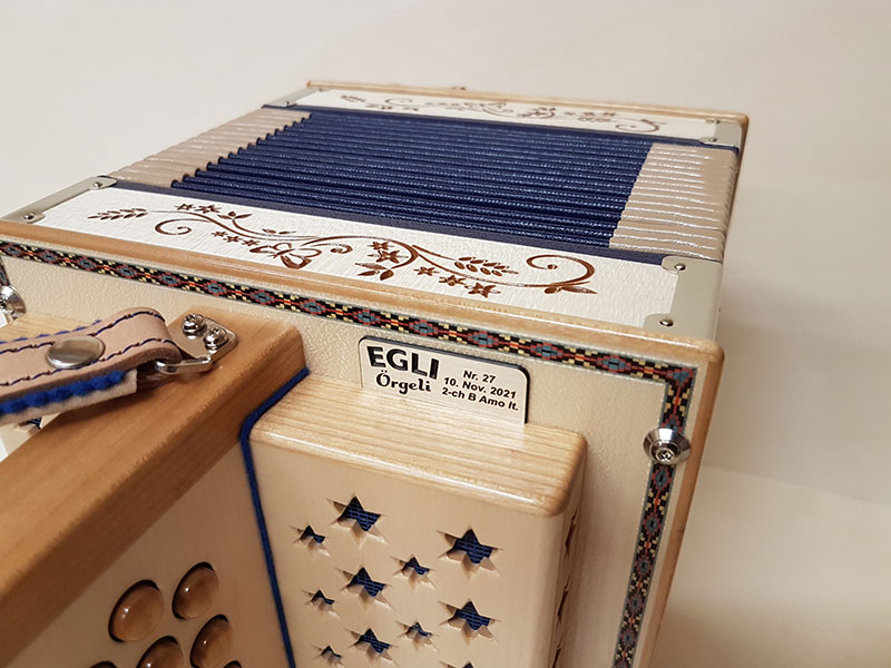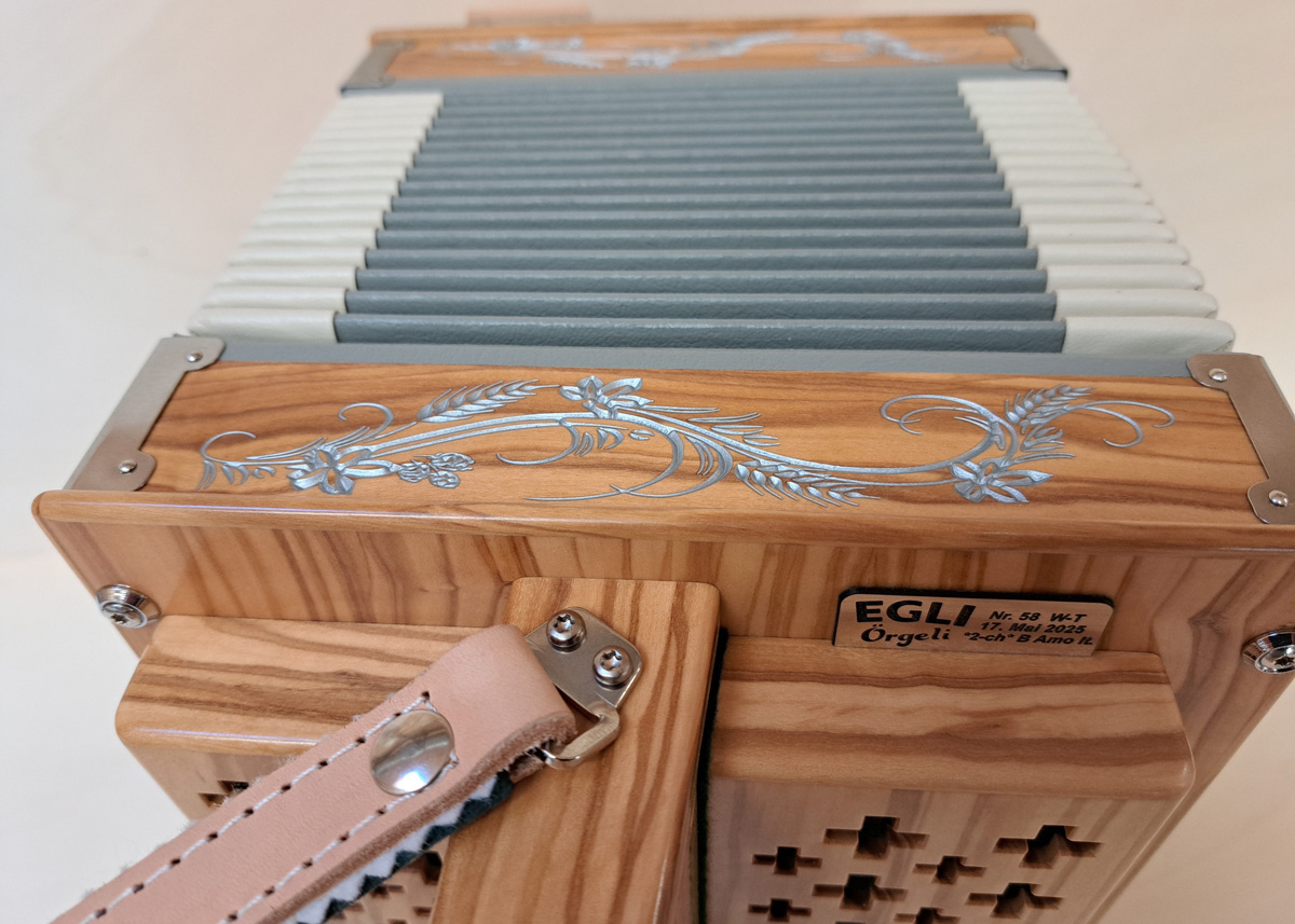 Bei EGLI Örgeli lebt die Tradition des Schwyzerörgeli-Baus weiter. Ueli Egli hat das Schwyzerörgeli zwar nicht neu erfunden, aber zumindest die gesamte Mechanik optimiert. Ein EGLI-Örgeli ist eine komplette Eigenproduktion. Bis auf die Intarsien, den Balg und das Stimmen stammt alles aus den Händen von Ueli Egli, der damit zu den Örgeli-Bauern in der Schweiz zählt, die praktisch das gesamte Schwyzerörgeli selber und mit moderner Fertigungstechnik herstellen.