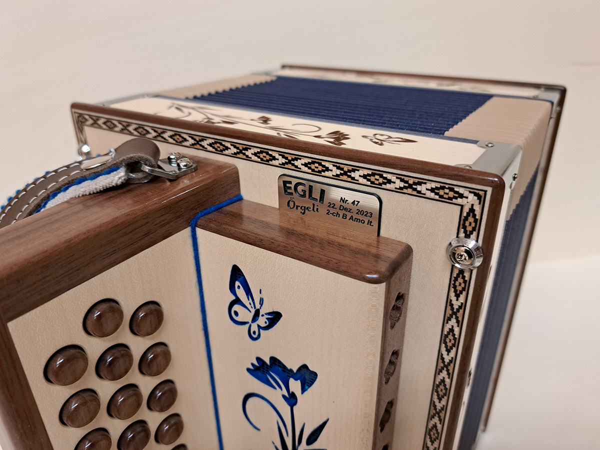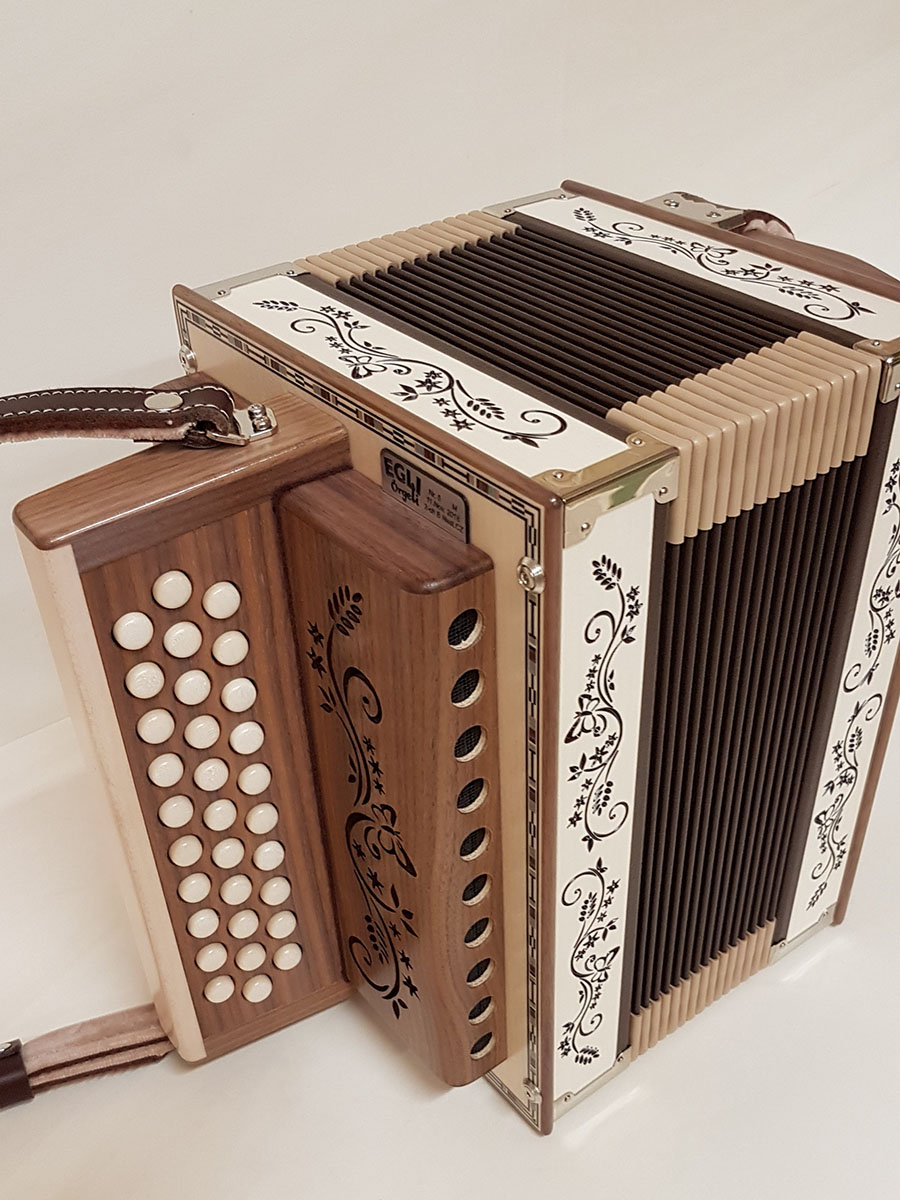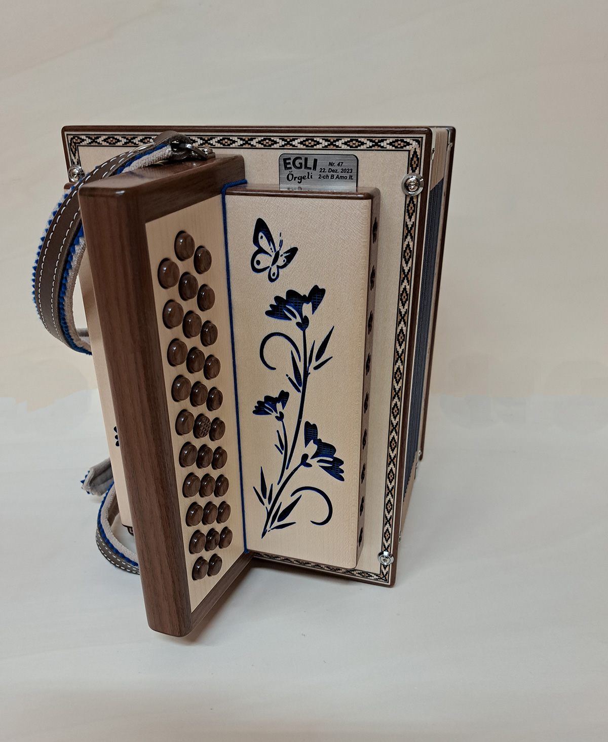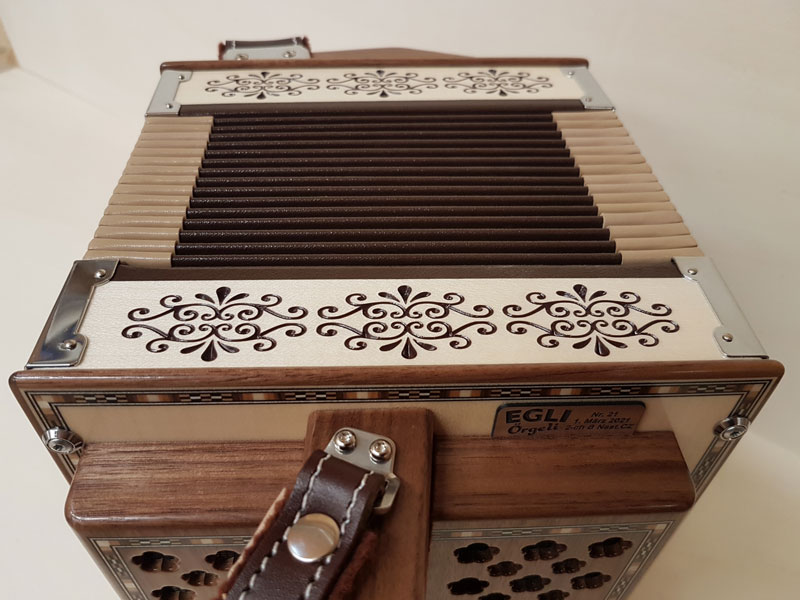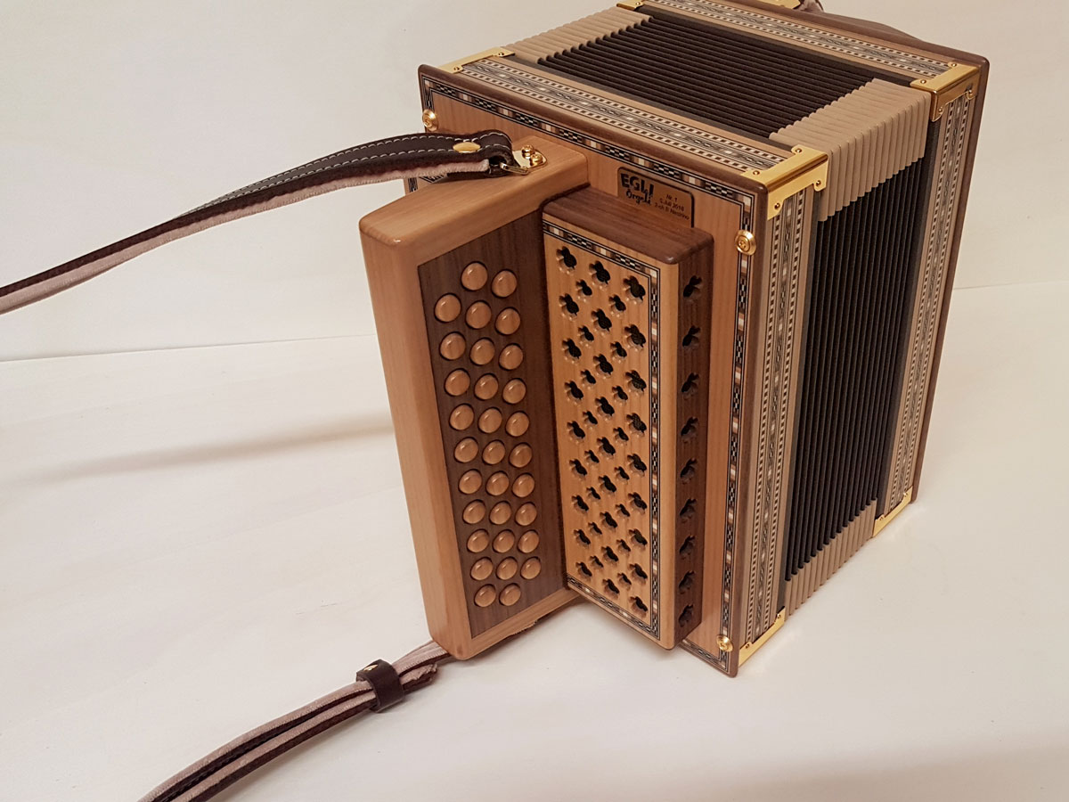 Bei EGLI Örgeli lebt die Tradition des Schwyzerörgeli-Baus weiter. Ueli Egli hat das Schwyzerörgeli zwar nicht neu erfunden, aber zumindest die gesamte Mechanik optimiert. Ein EGLI-Örgeli ist eine komplette Eigenproduktion. Bis auf die Intarsien, den Balg und das Stimmen stammt alles aus den Händen von Ueli Egli, der damit zu den Örgeli-Bauern in der Schweiz zählt, die praktisch das gesamte Schwyzerörgeli selber und mit moderner Fertigungstechnik herstellen.