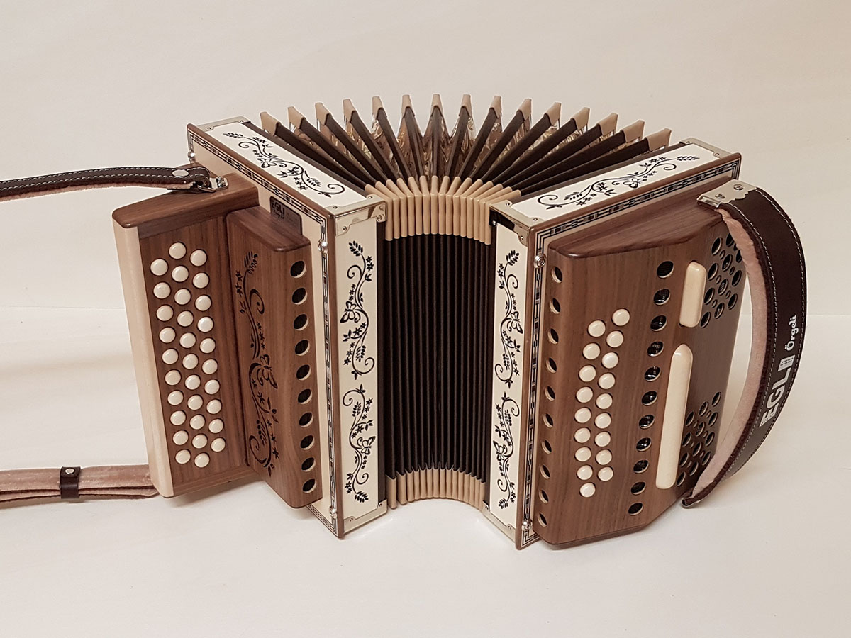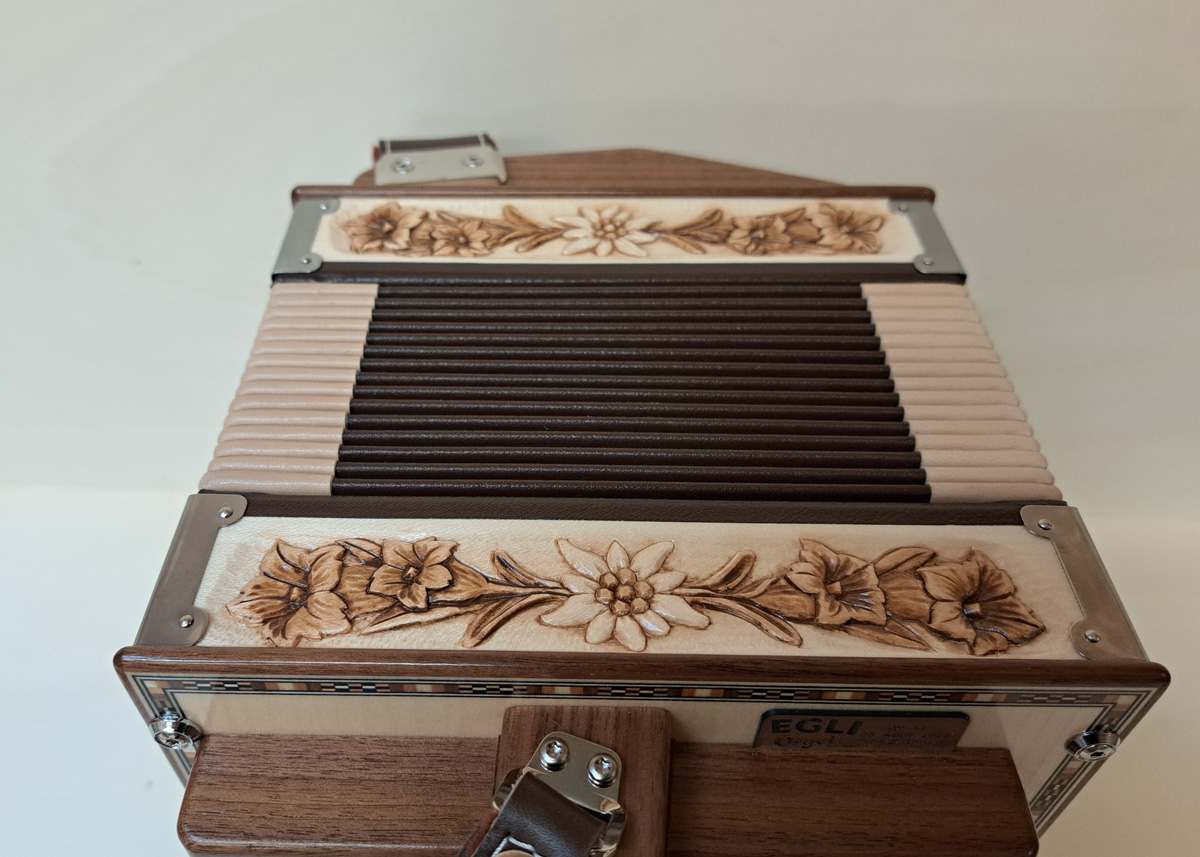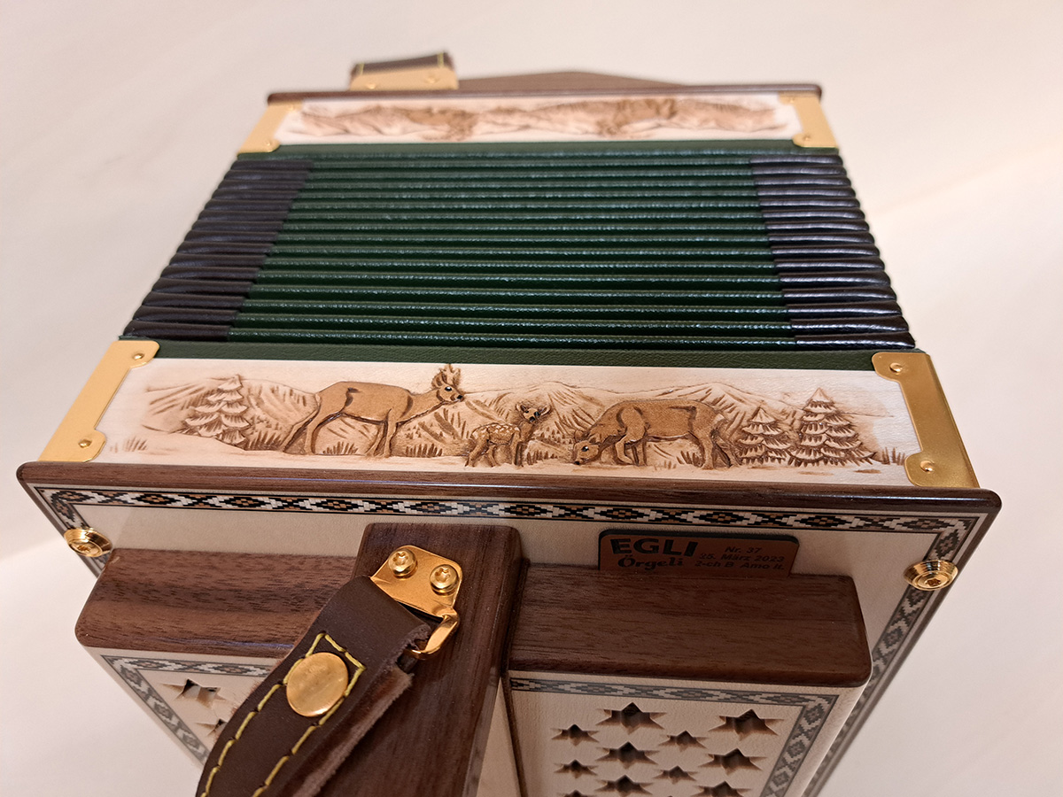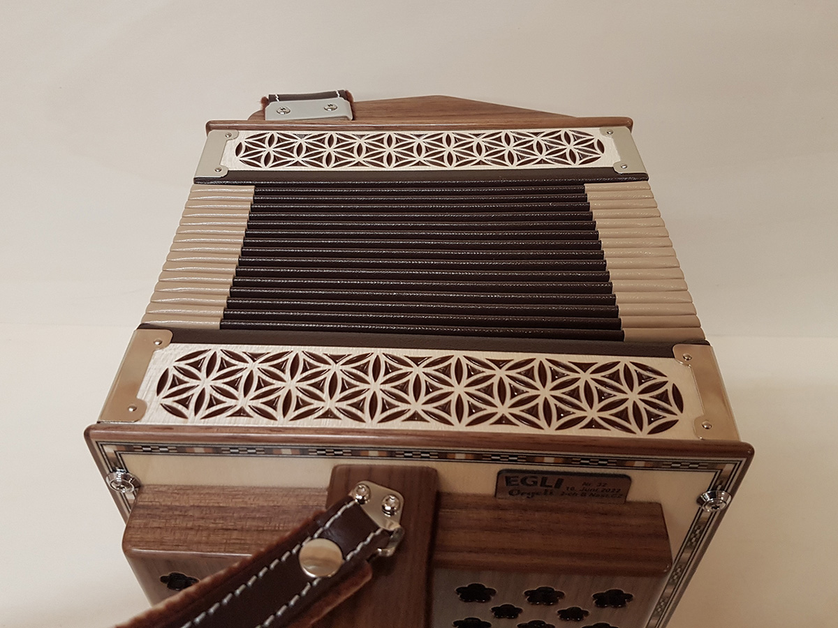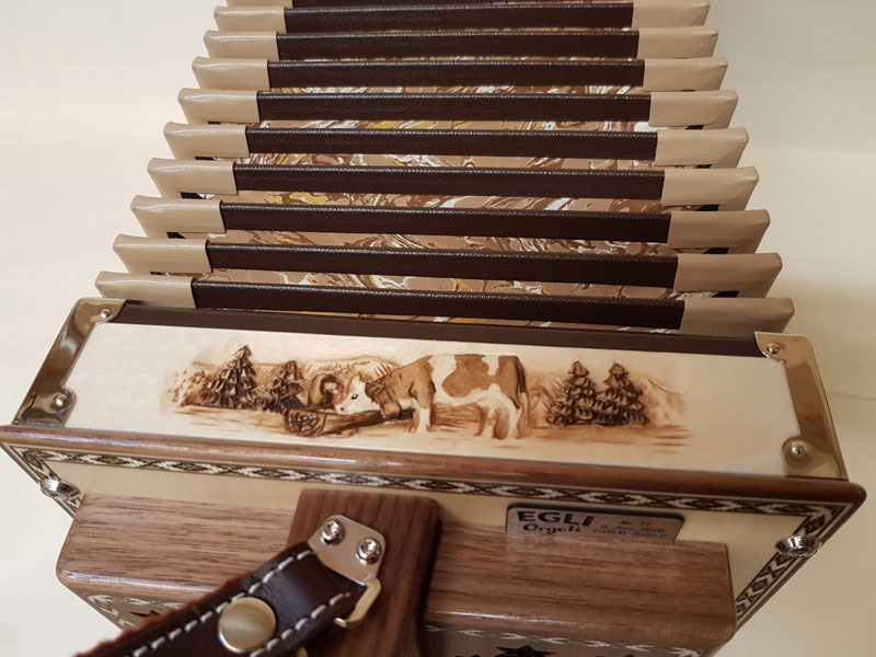 Bei EGLI Örgeli lebt die Tradition des Schwyzerörgeli-Baus weiter. Ueli Egli hat das Schwyzerörgeli zwar nicht neu erfunden, aber zumindest die gesamte Mechanik optimiert. Ein EGLI-Örgeli ist eine komplette Eigenproduktion. Bis auf die Intarsien, den Balg und das Stimmen stammt alles aus den Händen von Ueli Egli, der damit zu den Örgeli-Bauern in der Schweiz zählt, die praktisch das gesamte Schwyzerörgeli selber und mit moderner Fertigungstechnik herstellen.