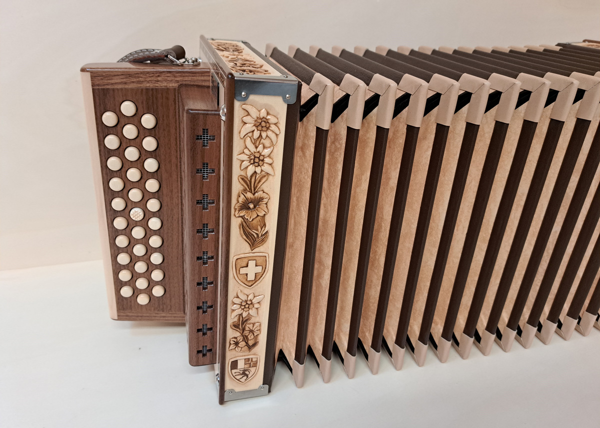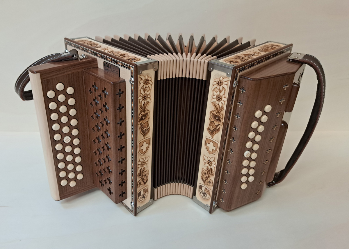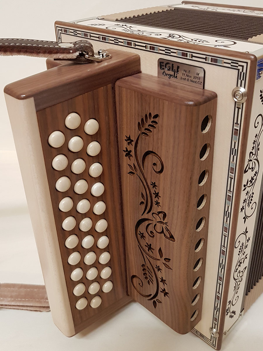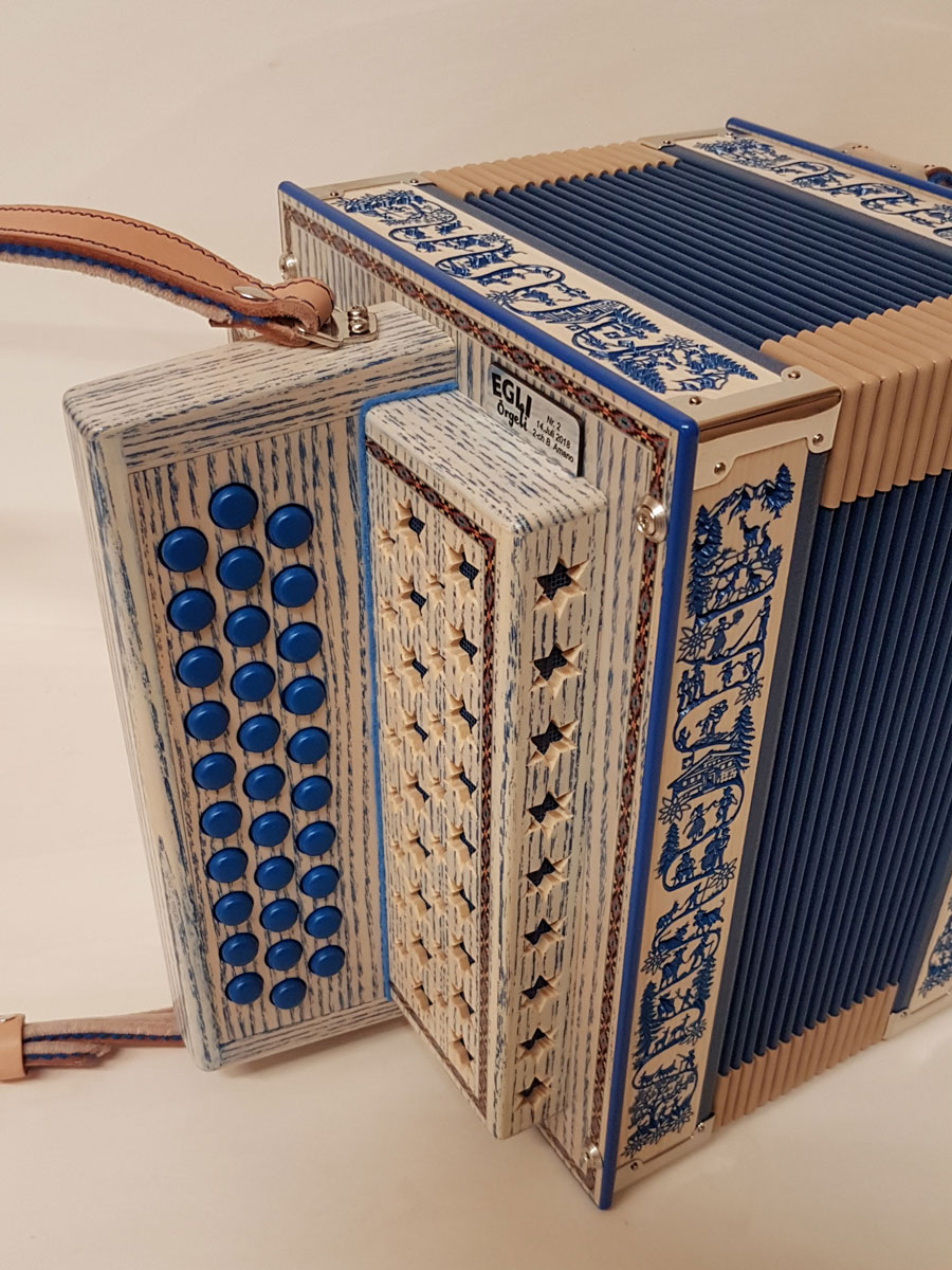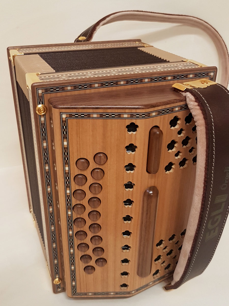 Bei EGLI Örgeli lebt die Tradition des Schwyzerörgeli-Baus weiter. Ueli Egli hat das Schwyzerörgeli zwar nicht neu erfunden, aber zumindest die gesamte Mechanik optimiert. Ein EGLI-Örgeli ist eine komplette Eigenproduktion. Bis auf die Intarsien, den Balg und das Stimmen stammt alles aus den Händen von Ueli Egli, der damit zu den Örgeli-Bauern in der Schweiz zählt, die praktisch das gesamte Schwyzerörgeli selber und mit moderner Fertigungstechnik herstellen.